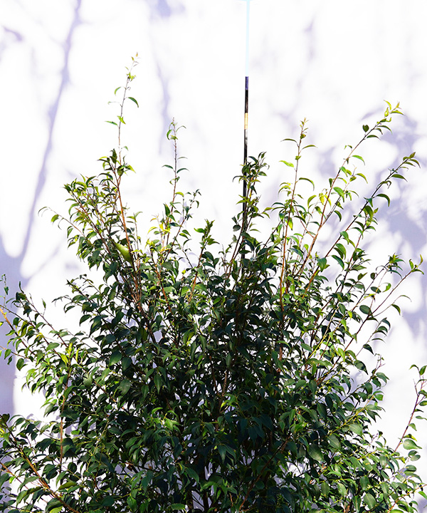 幹や葉を焼いた灰が染色に用いる 灰汁(あく)をとることから 「灰」の名前がつきました。 幹の細さと程よく小さい小葉のバランスがとても良く、その立ち姿の美しさから一目見て気に入る方が多くいます。この美しさをキープするためになるべく日陰になるところに植えてください。ボリュームのある樹形から細身の樹形まであり、植え付けの環境によって選ぶとよいでしょう。細身の樹形の方がお庭にフィットする場合も多くあるようです。少しでも日が当たる場所に植える場合は、ウッドチップなどでマルチングをしてこまめに水やりをすると美しさをキープできます。植え付け後は、木が環境に慣れるために葉を落としたり黄色くなったりしますが問題ありません。 - 鑑賞時期