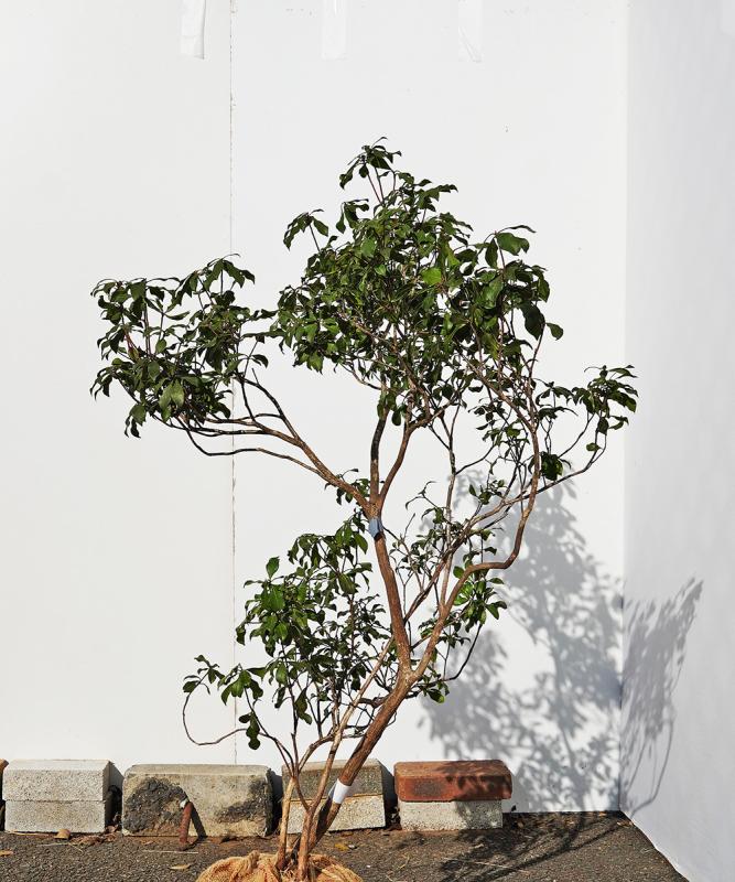 こちらの山採りのアセビは、里山で自生しているものを掘りだしたものです。本来の畑で作られるアセビは丸くずんぐりとし、高さが出ません。(そして高さを出すのはとても時間と手間がかかるので高価です。)しかし山採りの木は、すらっと幹が立ち上がり高さが出ます。