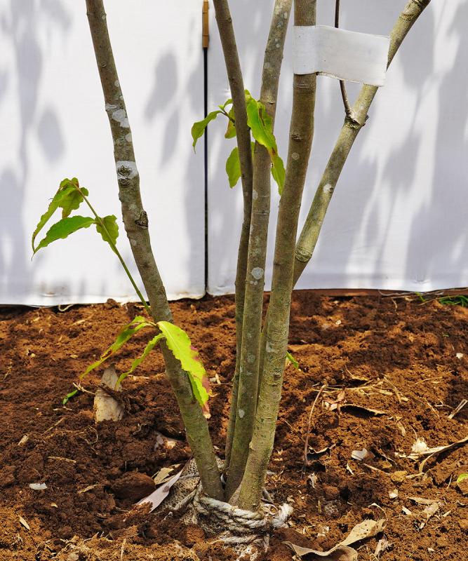 - 曲がりを伸ばしたい場合は、苗木の頃に支柱を添えて上に伸ばすとよい。