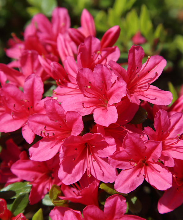 - 赤ピンク色の花をびっしりと咲かせる、定番の常緑低木です。常緑の為、1年を通して低い生垣やお庭のアクセントとして活躍してくれます。派生品種がとても多くありますが、一般的に「サツキ」というと、この赤ピンク色の花のものを指します。