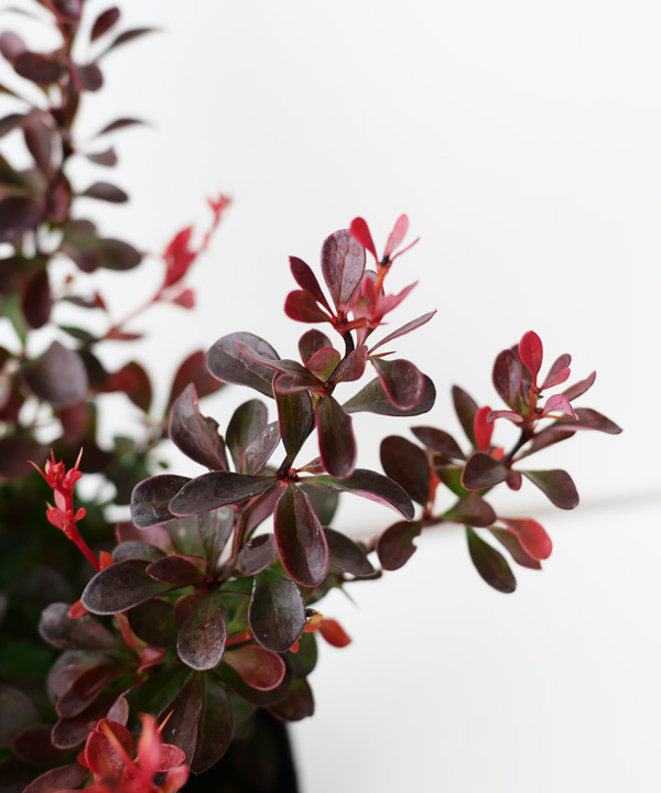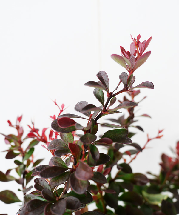 - メギは、美しい葉を楽しむことができる落葉低木です。また、4月頃に花、秋に紅葉も楽しむことができます。メギの大きな特徴は、葉色が他の植物では見られないほど、鮮やかな品種が多数あること。お庭のアクセントや境界で活躍してくれます。枝には葉が進化したトゲがありますので、植え場所に注意が必要です。トゲは防犯や動物の進入を防ぐのに活躍します。アトロプルプレアナナは、鮮やかな緑と赤ピンク色の新芽が美しい品種で、そのコントラストはお庭でもひときわ目を引きます。