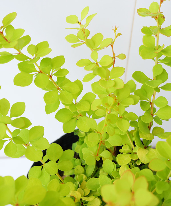- メギは、美しい葉を楽しむことができる落葉低木です。また、4月頃に花、秋に紅葉も楽しむことができます。メギの大きな特徴は、葉色が他の植物では見られないほど、鮮やかな品種が多数あること。お庭のアクセントや境界で活躍してくれます。枝には葉が進化したトゲがありますので、植え場所に注意が必要です。トゲは防犯や動物の進入を防ぐのに活躍します。メギオーレアは、鮮明な黄色い葉が美しい品種で、その発色の良さはお庭でもひときわ目を引きます。