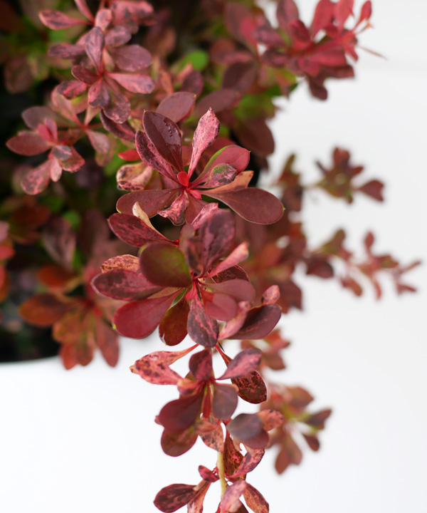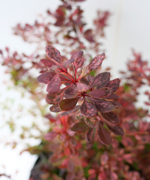 - メギは、美しい葉を楽しむことができる落葉低木です。また、4月頃に花、秋に紅葉も楽しむことができます。メギの大きな特徴は、葉色が他の植物では見られないほど、鮮やかな品種が多数あること。お庭のアクセントや境界で活躍してくれます。枝には葉が進化したトゲがありますので、植え場所に注意が必要です。トゲは防犯や動物の進入を防ぐのに活躍します。メギピンクアトラクションは、赤葉の斑入り品種で、特に新芽は、光沢のあるパステルピンクを思わせるほどの美しさで、お庭でもひときわ目を引きます。