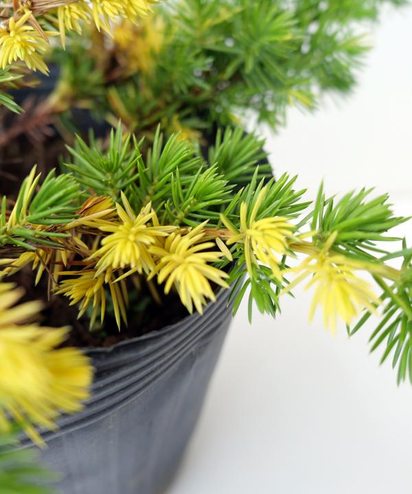 - コニファーの中でも珍しい、斑入りの品種です。グリーン系とゴールド系の二つを一度に楽しむことができます。育て方は、他のコニファーと同様に育てやすいです。生産量はとても少なく、希少な品種です。