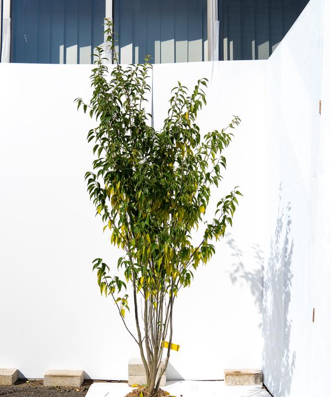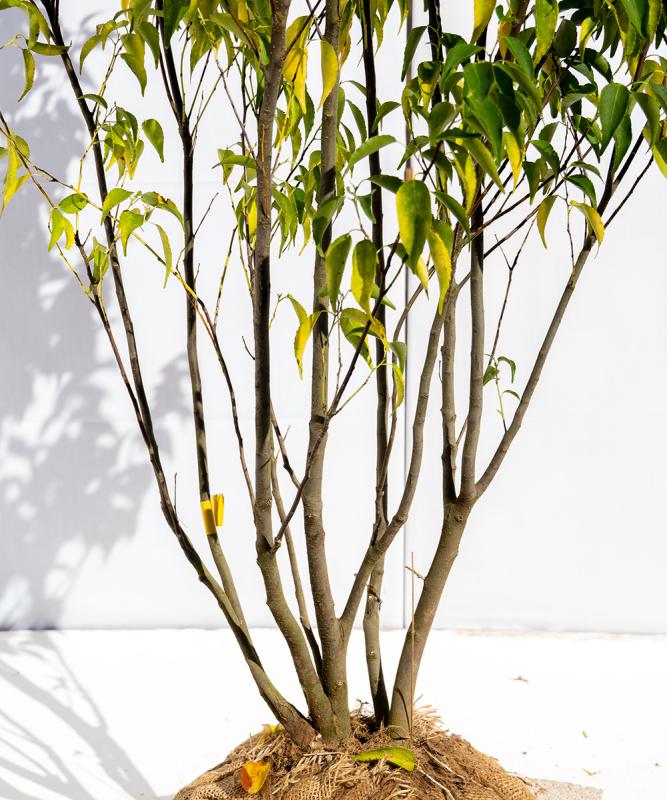 幹や葉を焼いた灰が染色に用いる 灰汁(あく)をとることから 「灰」の名前がつきました。 幹の細さと程よく小さい小葉のバランスがとても良く、その立ち姿の美しさから一目見て気に入る方が多くいます。この美しさをキープするためになるべく日陰になるところに植えてください。ボリュームのある樹形から細身の樹形まであり、植え付けの環境によって選ぶとよいでしょう。細身の樹形の方がお庭にフィットする場合も多くあるようです。少しでも日が当たる場所に植える場合は、ウッドチップなどでマルチングをしてこまめに水やりをすると美しさをキープできます。植え付け後は、木が環境に慣れるために葉を落としたり黄色くなったりしますが問題ありません。 - 鑑賞時期