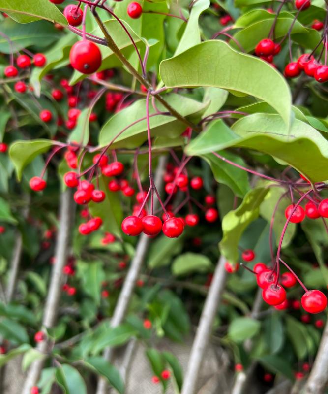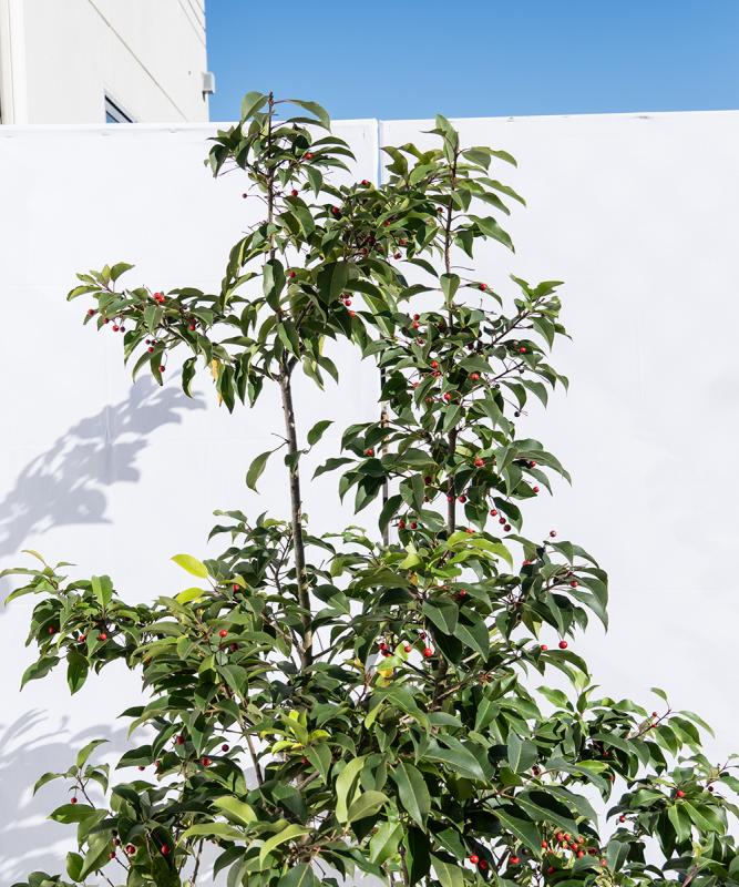 実付も良く、実の最盛期にはクリスマスシーズンにクリスマスカラーの彩を添えてくれます。また、実のない時期も、すらっとしすぎない自然な樹形は、雑木風のお庭にもしっくりとなじみます。