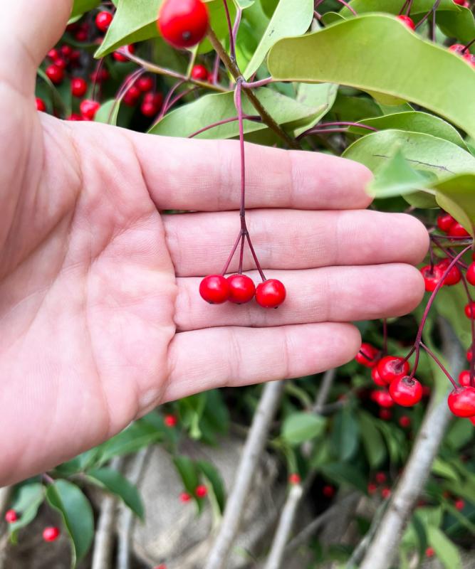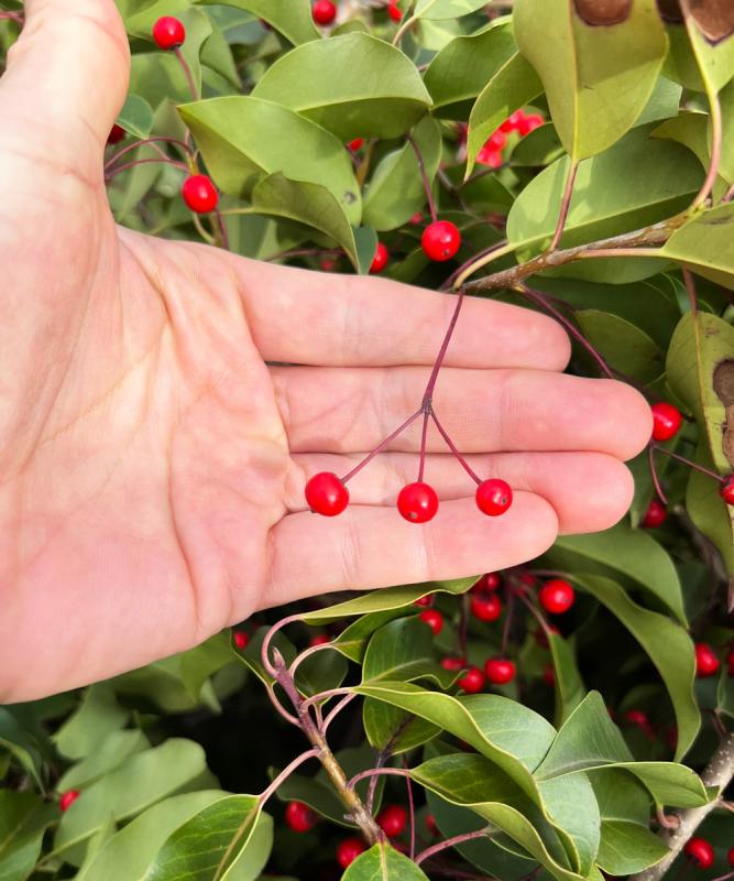 実付も良く、実の最盛期にはクリスマスシーズンにクリスマスカラーの彩を添えてくれます。また、実のない時期も、すらっとしすぎない自然な樹形は、雑木風のお庭にもしっくりとなじみます。
