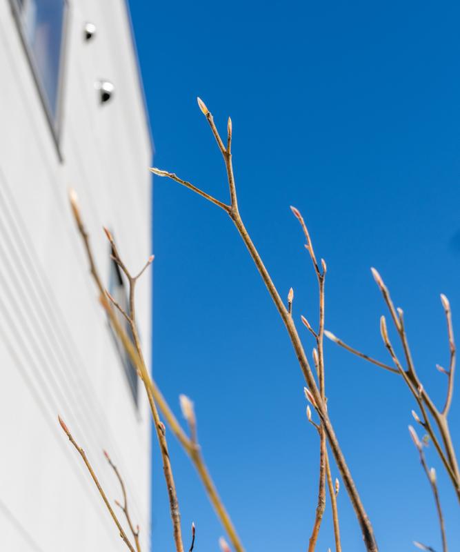 - クロモジは、 葉のつけねが紅みを帯びて新芽を開くので、鮮やかな眩しい新緑を魅せてくれます。