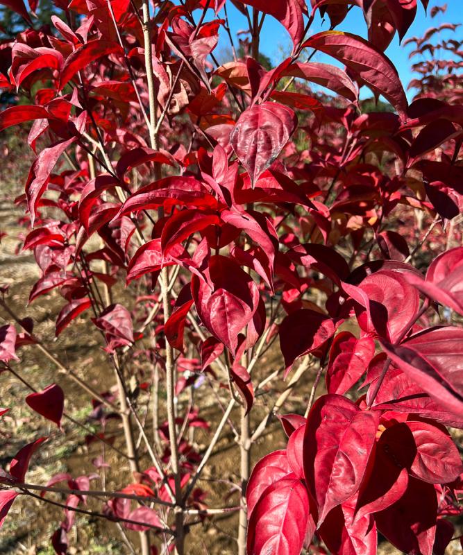 - ヤマボウシ「ブルーミングホワイトテトラ」は、春と秋に大輪の白い花を咲かせる珍しい四季咲きのヤマボウシです。また晩秋には鮮やかな赤い紅葉も楽しむことができます。そのため、春、秋、晩秋と一年を通じて楽しむことができます。これはある生産者さんが何年もかけて選抜してきた常緑と落葉のヤマボウシを交雑させてつくられた長年の努力の結晶と言えます。こちらはパテント管理されている商品のため、生産数は限られます。植え付けて1~2年は白っぽい花が咲くことがありますが、数年で本来の色の花を楽しめます。日陰に植えると、花付きが悪くなることがあります。