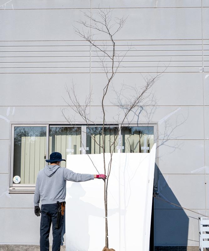 - 曲がりを伸ばす場合は、苗木の頃に、支柱を添えてまっすぐにします。そのあとは、放任でも自然と樹形が整っていきます。