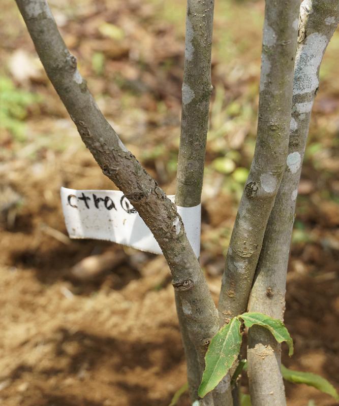 - 曲がりを伸ばす場合は、苗木の頃に、支柱を添えてまっすぐにします。そのあとは、放任でも自然と樹形が整っていきます。