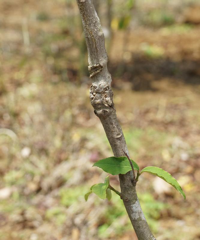 - 稀にテッポウムシか、針で開けたような穴からおがくずを出すことがあります。見つけ次第市販のテッポウムシ用のノズルの付いた殺虫剤を穴に注入しましょう。