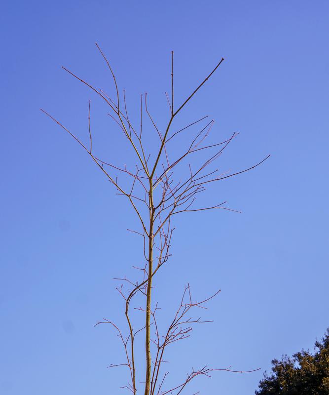- 曲がりを伸ばす場合は、苗木の頃に、支柱を添えてまっすぐにします。そのあとは、放任でも自然と樹形が整っていきます。