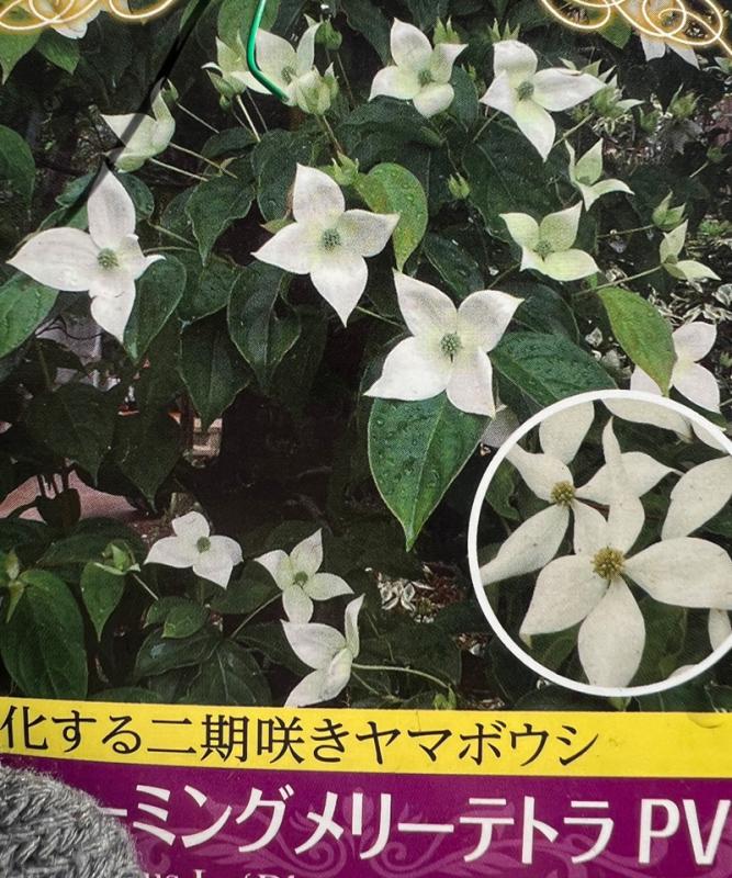 - ヤマボウシ「ブルーミングメリーテトラ」は、春と秋に違う形の白い花を咲かせる大変珍しい四季咲きのヤマボウシです。また晩秋には鮮やかな紅葉も楽しむことができます。そのため、春、秋、晩秋と一年を通じて楽しむことができ、陽気なという意味を持ったメリーと名付けられています。これはある生産者さんが何年もかけて選抜してきた常緑と落葉のヤマボウシを交雑させてつくられた長年の努力の結晶と言えます。こちらはパテント管理されている商品のため、生産数は限られます。日陰に植えると、花付きが悪くなることがあります。