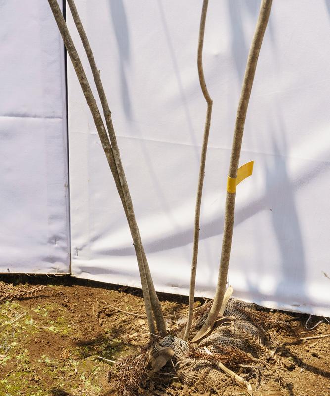 - 成長すると根元から新しい子供のような幹が上に伸びてくる。これを放置すると、元の親の樹勢がなくなるため、こまめに切るとよい。