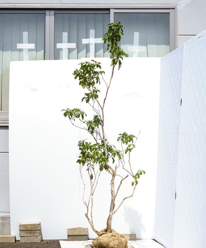 こちらの山採りのアセビは、里山で自生しているものを掘りだしたものです。本来の畑で作られるアセビは丸くずんぐりとし、高さが出ません。(そして高さを出すのはとても時間と手間がかかるので高価です。)しかし山採りの木は、すらっと幹が立ち上がり高さが出ます。