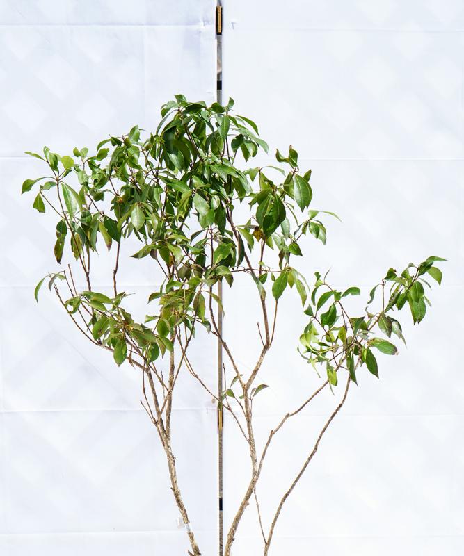 こちらの山採りのアセビは、里山で自生しているものを掘りだしたものです。本来の畑で作られるアセビは丸くずんぐりとし、高さが出ません。(そして高さを出すのはとても時間と手間がかかるので高価です。)しかし山採りの木は、すらっと幹が立ち上がり高さが出ます。