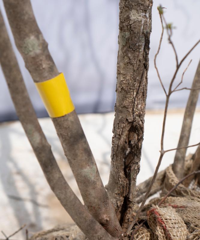 アオダモの山採りものは、幹につく斑紋も魅力です。幹に浮かび上がるような白い模様を楽しむことができ、これは木ごとにつき方が変わります。