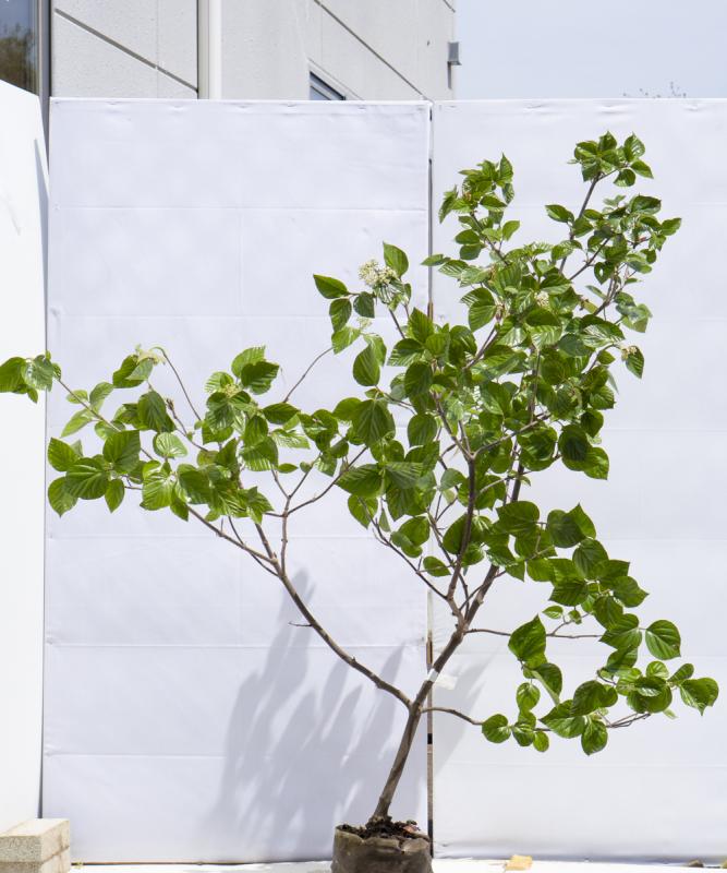 大きな葉のわりに葉の付きはほどほどなので、見た目の雰囲気は軽やかに育ちます。刈り込むともっさりとしすぎてしまうので、枝抜きなどで自然樹形に育てると良いでしょう。