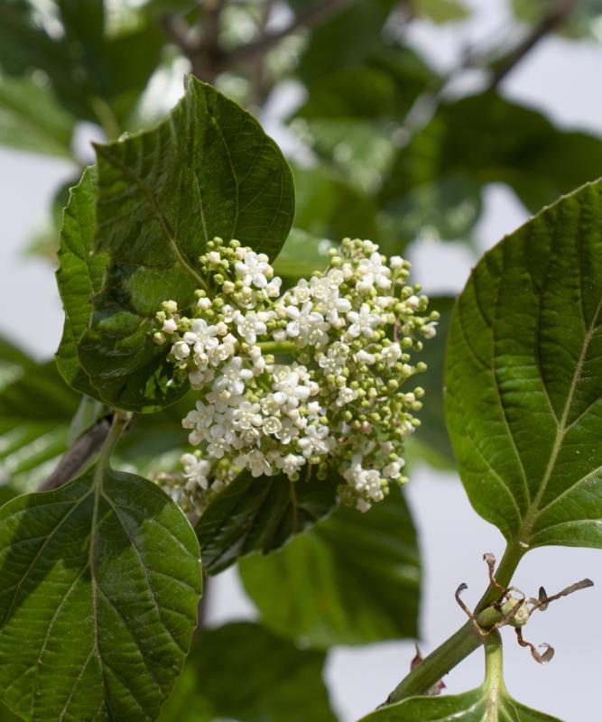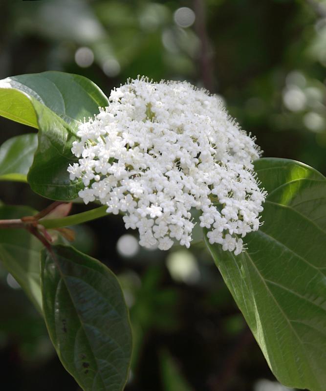 ハクサンボクは、いわゆるビバーナム(ガマズミ)の仲間で、白い集合花と秋に赤い実を楽しむことが出来ます。葉も大きめですが照りがありとても美しいです。お常緑低木の中では、花や葉の雰囲気に特徴がありお庭で活躍してくれる貴重な存在です。