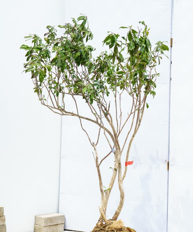 こちらの山採りのアセビは、里山で自生しているものを掘りだしたものです。本来の畑で作られるアセビは丸くずんぐりとし、高さが出ません。(そして高さを出すのはとても時間と手間がかかるので高価です。)しかし山採りの木は、すらっと幹が立ち上がり高さが出ます。