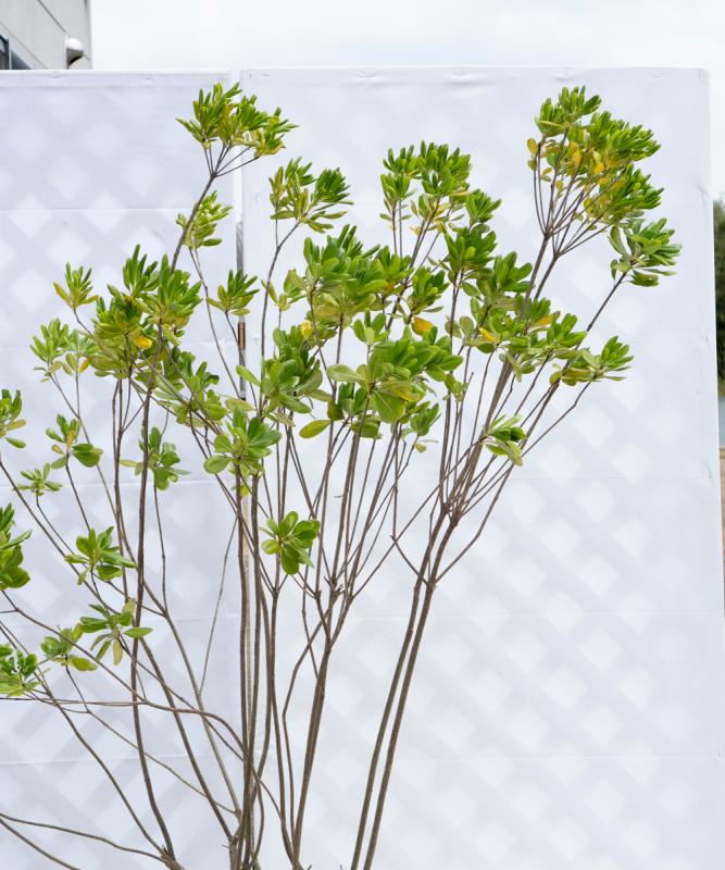 植栽では海岸沿い道路や公園で生垣などで使われます。比較的地味な木ではあり、日当たりの良い場所で刈り込んで使うと面白味が出ません。自然樹形にして葉や枝を密にしないことで雑木の庭に使用したり、やや密にすることでエキゾチックな雰囲気で他の木と組み合わせるように使用するとよいでしょう。