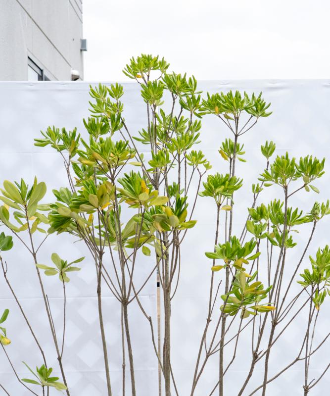 植栽では海岸沿い道路や公園で生垣などで使われます。比較的地味な木ではあり、日当たりの良い場所で刈り込んで使うと面白味が出ません。自然樹形にして葉や枝を密にしないことで雑木の庭に使用したり、やや密にすることでエキゾチックな雰囲気で他の木と組み合わせるように使用するとよいでしょう。