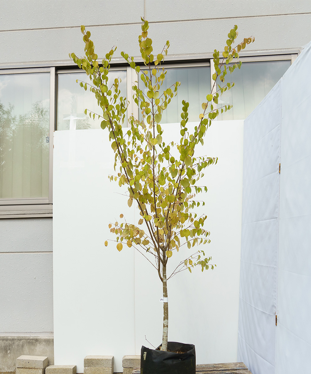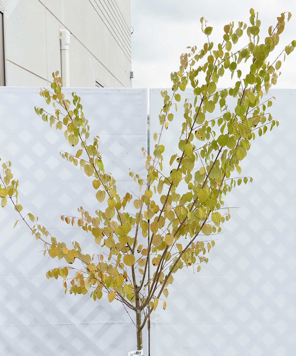 - 黄緑色でハート形の葉がとても可愛らしい植木です。日本の山野に自生していますが、樹形が素直で美しく、お庭ではシンボルツリーとして活躍します。西日に少し弱いので、関東程度の気温の地域では、紅葉前に落葉することがありますが、黄色やピンク色の紅葉が楽しめる木です。