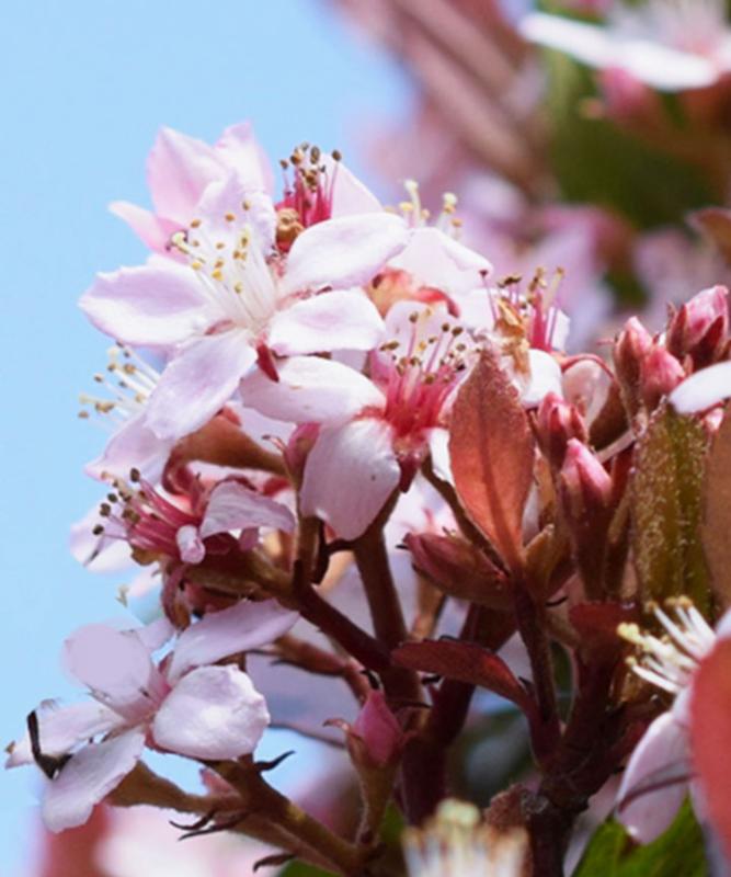 - ヒメシャリンバイは、シャリンバイよりも葉が小さく花付きも良い品種です。花はピンク色で、とてもかわいいです。グランドカバーや刈り込んで低い生け垣として利用されます。