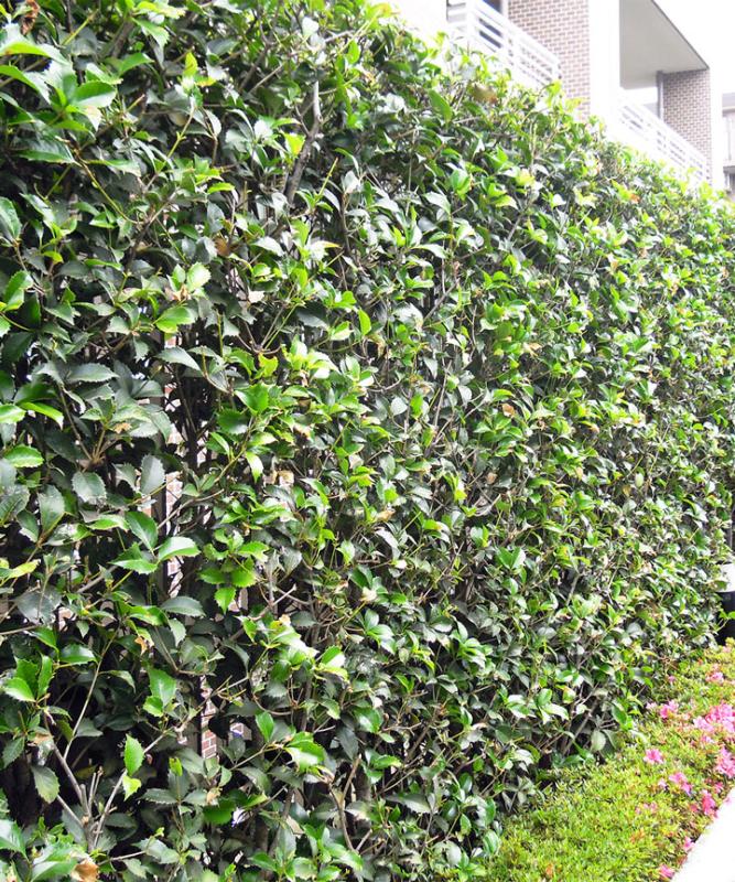 - 比較的上に伸びる樹形のため、支柱がなくともきれいな生垣になりやすい。必要に応じて支柱をするようにする。