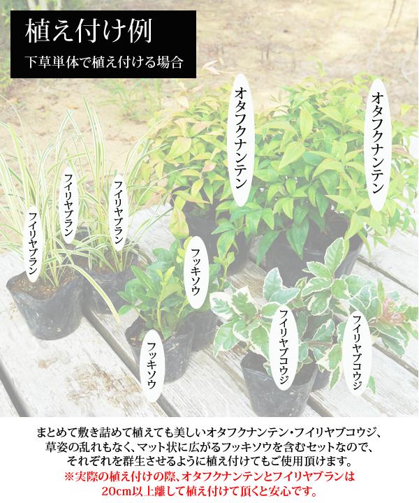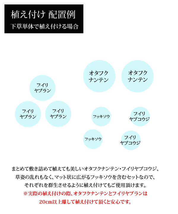 下草単体で植え付けして頂く場合、同じ品種同士を群生で植え付けてもまとまって仕上がります。