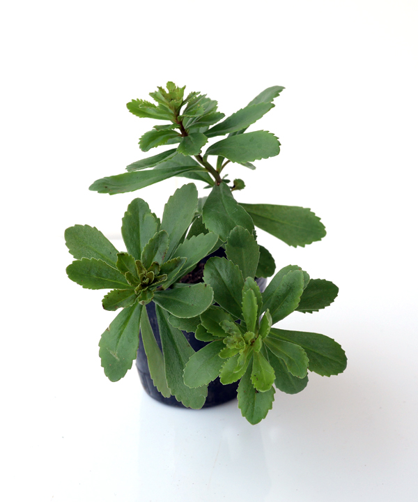 - ギザギザで楕円形の葉をもつ多肉植物。星形の黄色い花を咲かせます。肉厚の葉を広く広げ、存在感があります。多肉植物なので、丈夫で育てやすいです。多年草(常緑)に分類されますが、冬は葉を落として冬芽で過ごすので、枯れているように見えます。地域によっては絶滅危惧種に指定されているところもあります。