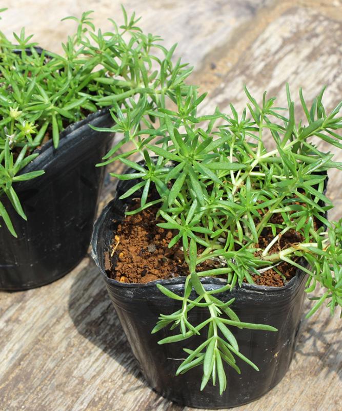 - 単体でアクセントに使用するか、花壇の縁取りなど、敷き詰めて植えることも可能。植え付け間隔は、20cm(1平方メートルに25ポット)程度がおすすめです。成長して広がることで、雑草防除にも向いています。
