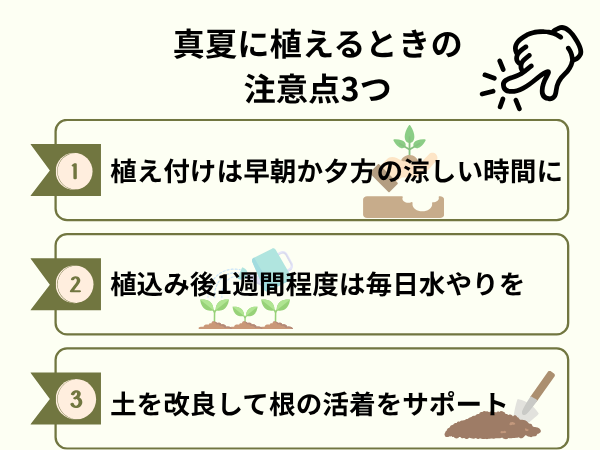 あわせて、真夏の植え付けで失敗しないための注意点もわかりやすくご紹介します。