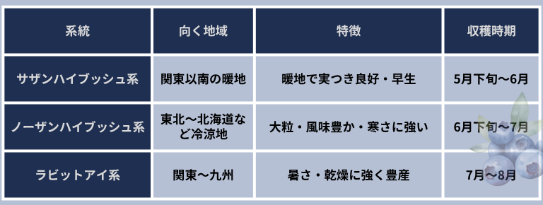 ブルーベリー品種の3つの系統とは?