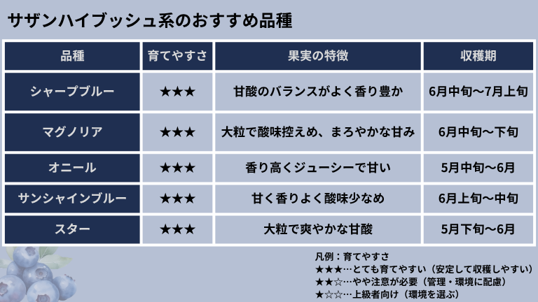 サザンハイブッシュ系(暖地向け・早生)